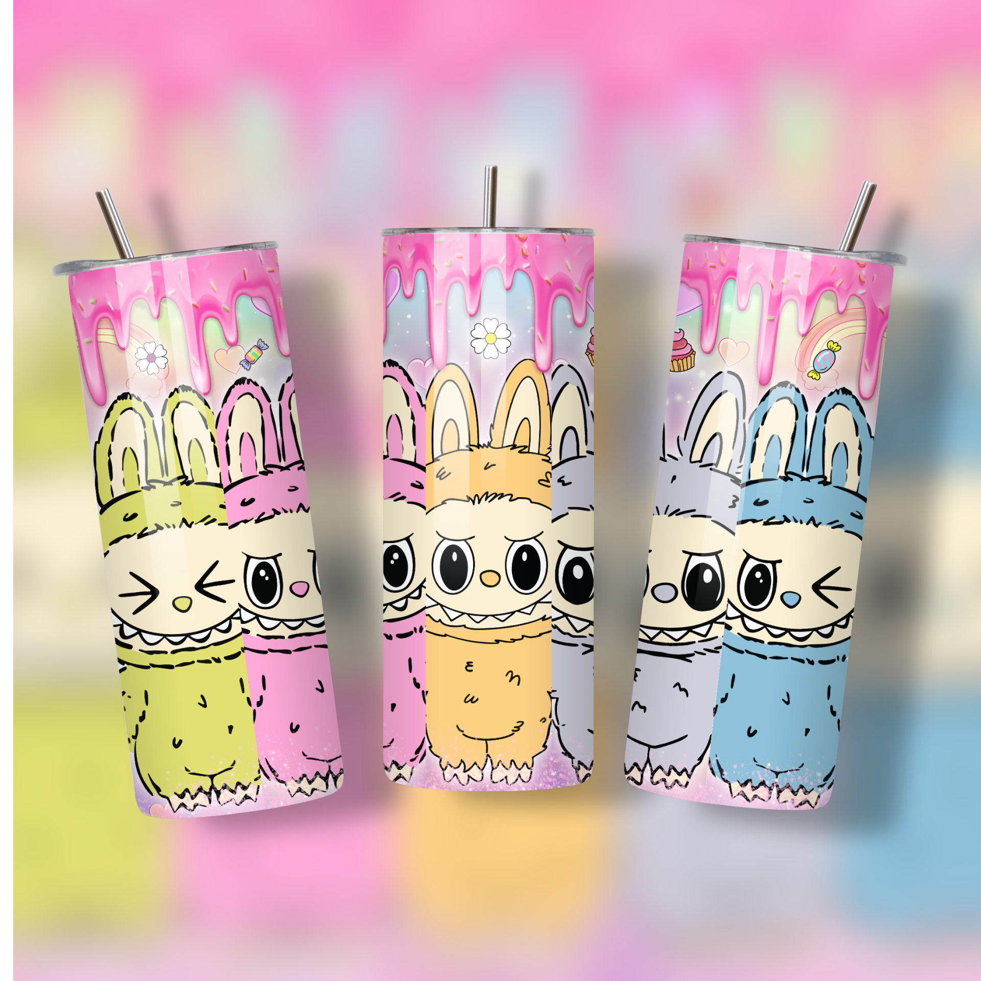 Labubu pink melting family